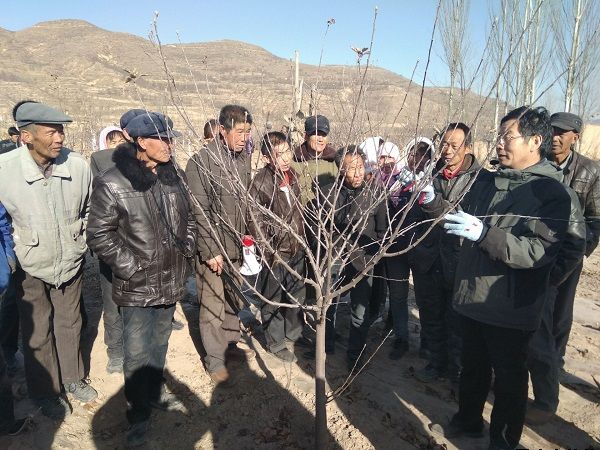 公司在靜寧縣細巷鎮(zhèn)中華村曹川村舉辦冬季果園管理技術培訓班